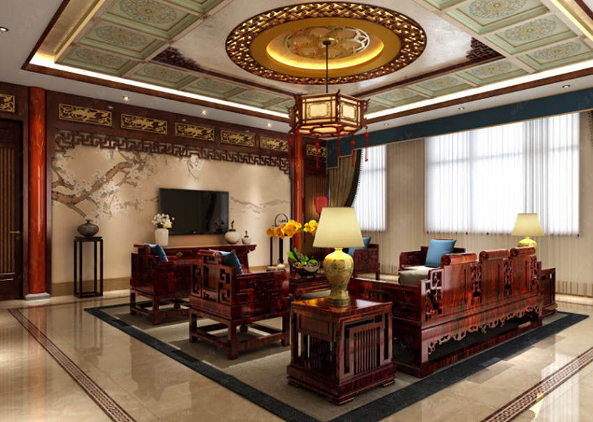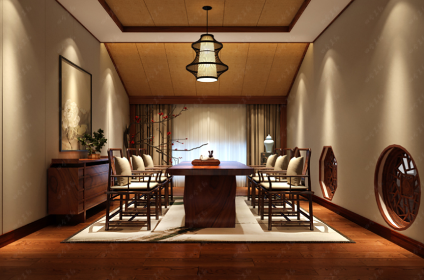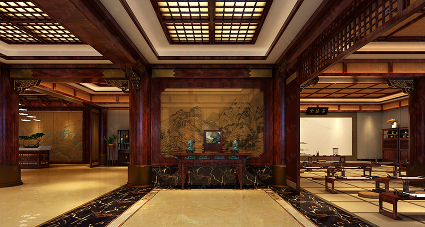 清雅、復古的裝飾藝術,靈活多變,富有層次感,讓整個空間體現出尊貴的品質。在設計手法上,利用了厚重濃郁的復古中式裝修元素為基調,精雕細刻,雅然成趣。
